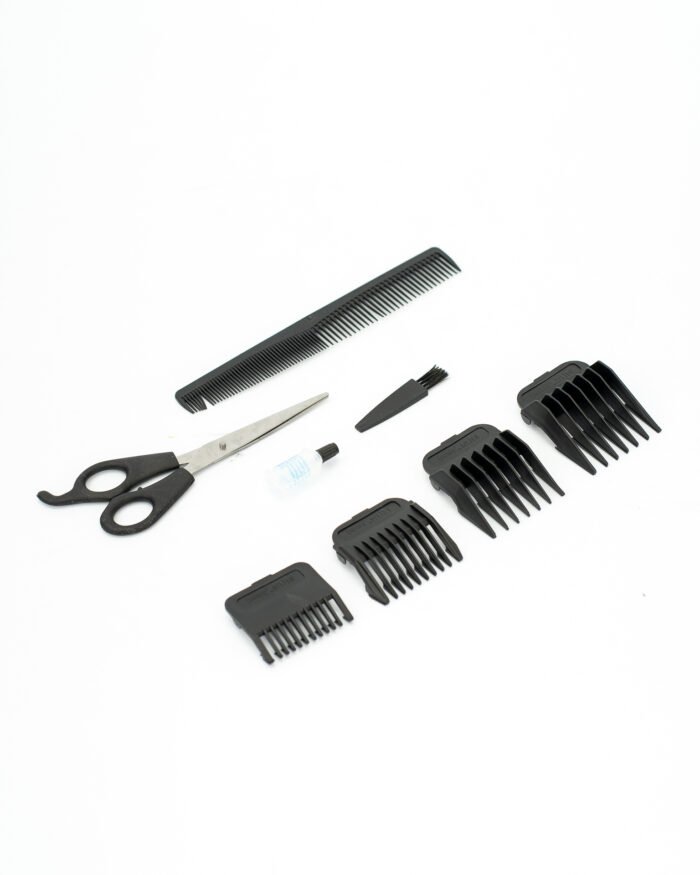 •Set de accesorios: peine de peluquería, tijera, cepillo de limpieza y aceite lubricante