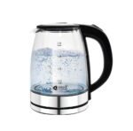 Con su diseño en vidrio templado y base de acero inoxidable, permite ver el proceso de ebullición mientras el agua se calienta de forma rápida y eficiente gracias a su potencia de 1500W.
