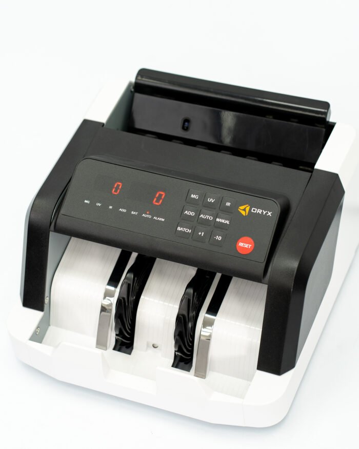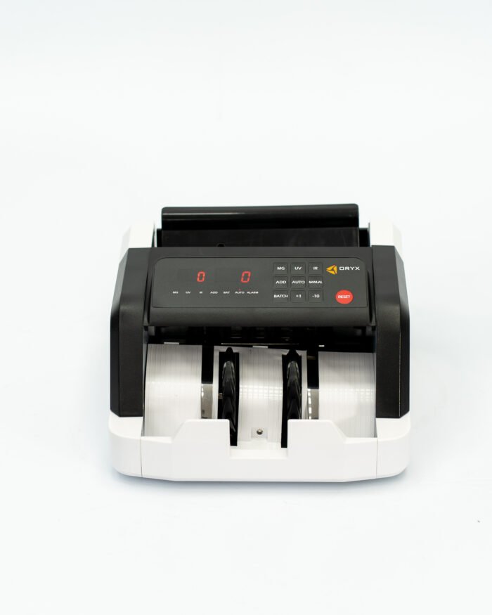 La Máquina Contadora de Billetes ORYX M21E combina precisión, velocidad y diseño moderno para facilitar el control de efectivo en negocios, oficinas y comercios. Con capacidad para contar hasta 1000 billetes y compatibilidad con pesos, dólares y euros, brinda resultados rápidos y confiables.